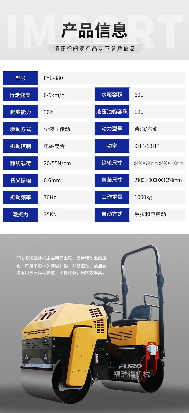 主要用于溝渠基礎,道路,體育場地的壓實整平,也可用于壓實瀝青表面的作業(yè)。
