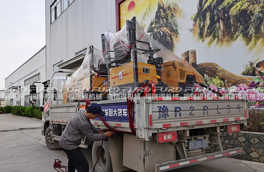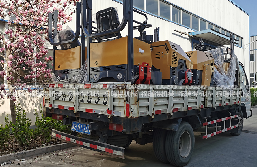 4月23日,福瑞得機(jī)械將日照客戶十天前訂購的7臺(tái)1噸全液壓振動(dòng)壓路機(jī)裝車發(fā)走。