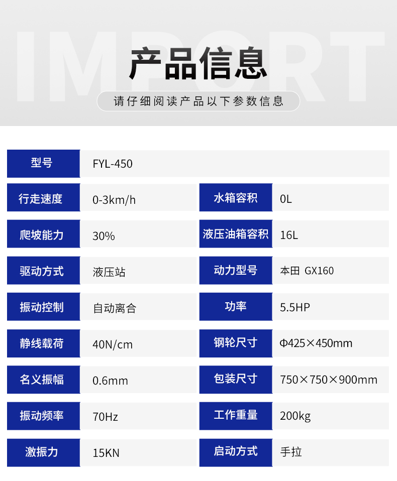 主要用于溝渠回填壓實,FYL-450壓路機可以替代平板夯。