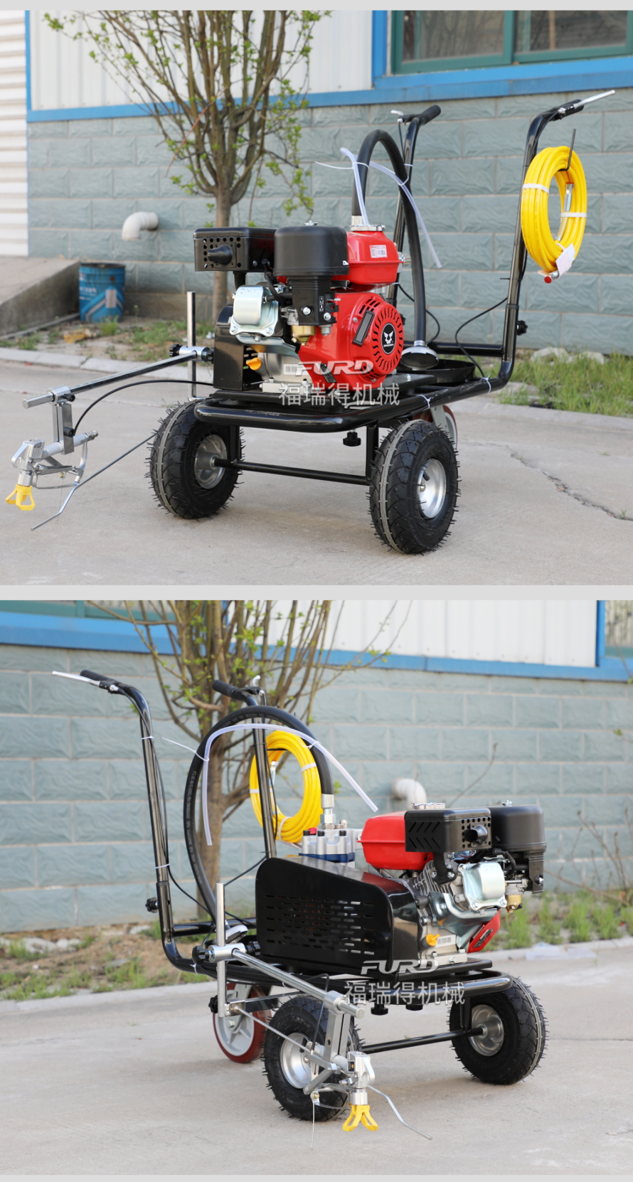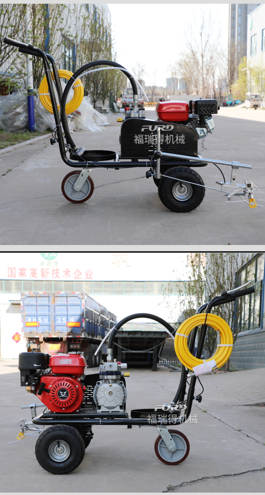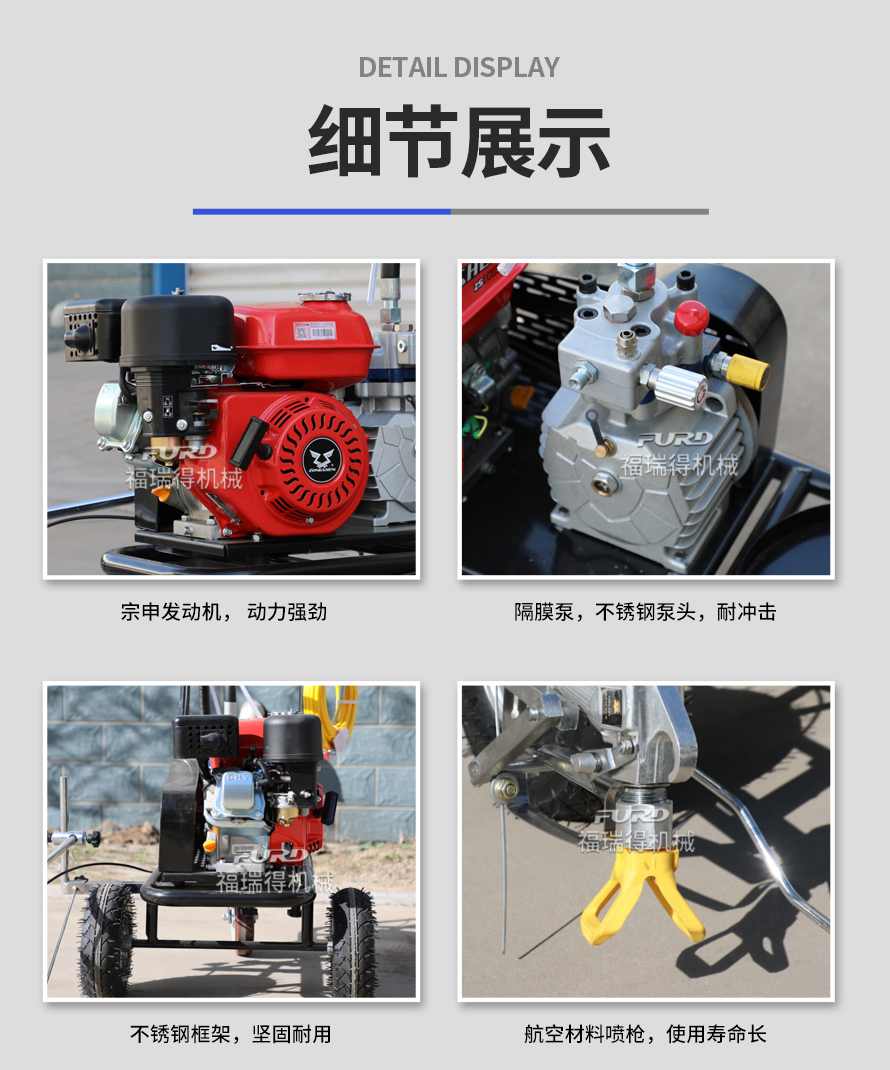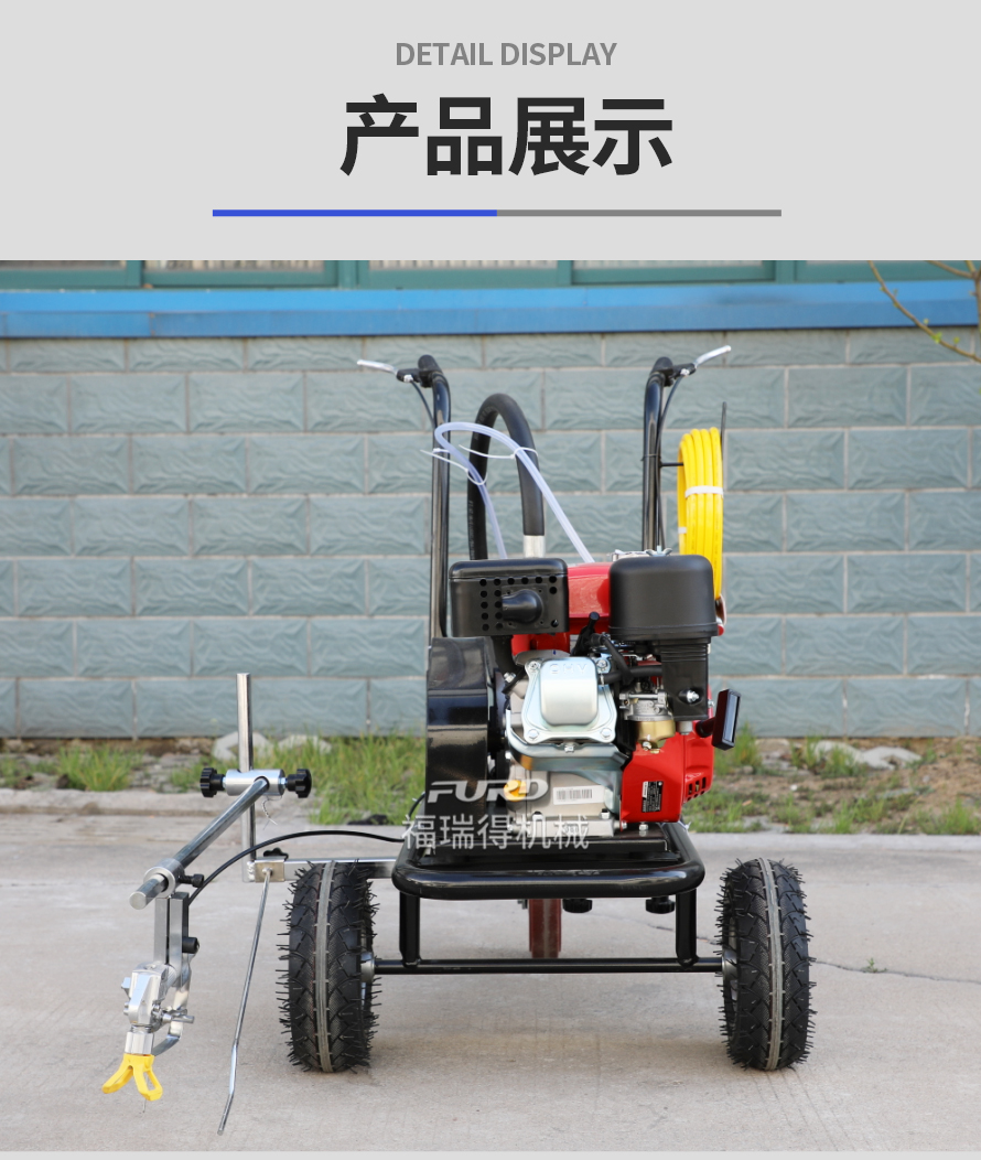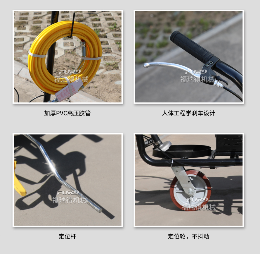 小型手推式道路劃線機(jī)是一種在道路、停車場(chǎng)、廣場(chǎng)和跑道等平整地面上劃出不同約束、指引和警示等規(guī)則限制標(biāo)志的路面施工機(jī)械。最常見(jiàn)的就是在馬路上劃斑馬線,在路上劃車庫(kù)線、停車線等等應(yīng)用于小型工程、短途施工,活動(dòng)方便,靈活操作。