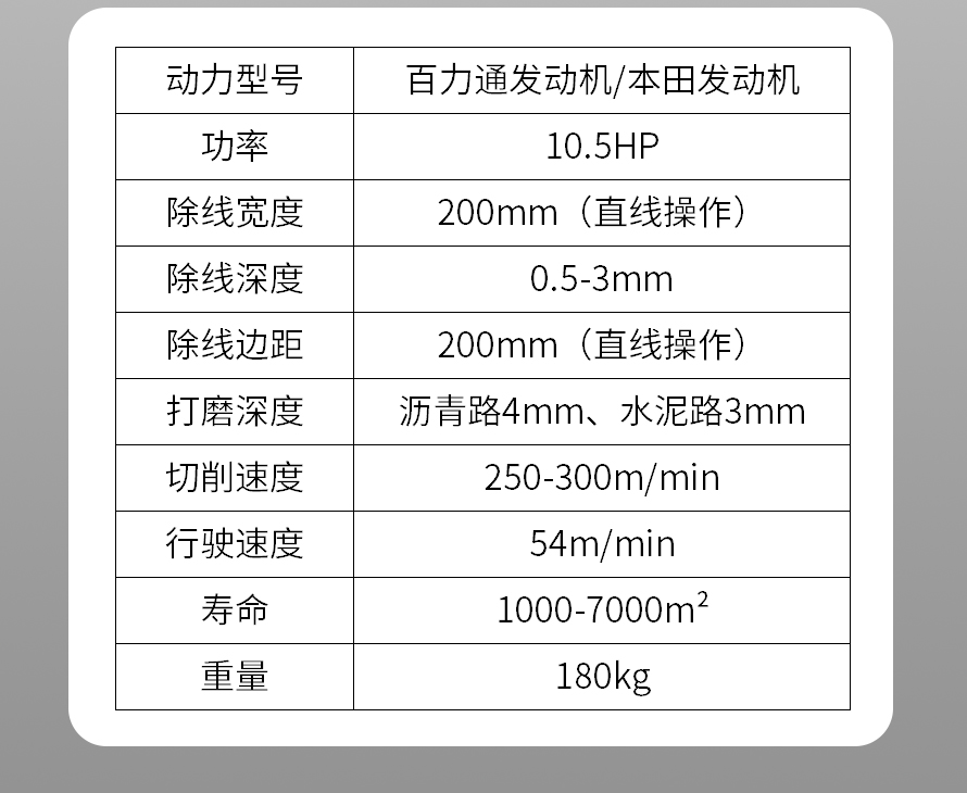 特點:體積小、重量輕、機動靈活、工作效率高、操作簡單。 適應(yīng)范圍:主要用于瀝青道路、混凝土道路、物業(yè)小區(qū)、機場、停車場等地的標線清除。