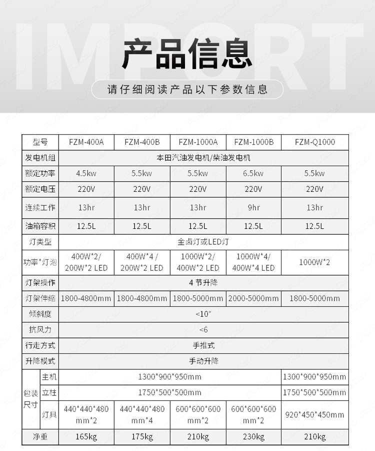 FZM-1000B 5米可升降移動工程照明燈車