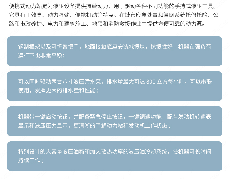 適用于路面搶修、道路施工、市政維護(hù)、保養(yǎng)、園林等工作場景 ;.設(shè)備安裝便捷,搬運(yùn)簡便,適應(yīng)性強(qiáng),可輕松解決破碎、切削、分裂、打樁、壓實等施工項目。